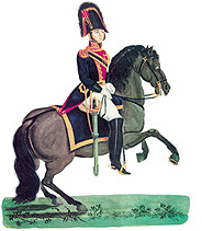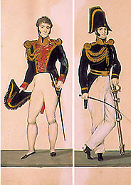 with epaulettes and laces, bandolier, braces and sable,